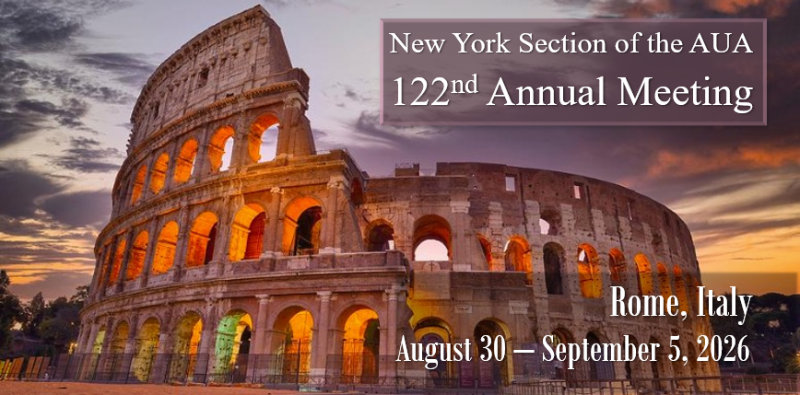 The New York Section, AUA Presents: The 122nd Annual Meeting Rome, Italy August 30th – September 5th, 2026 Register Now! For more information, visit our online Conference Information page.